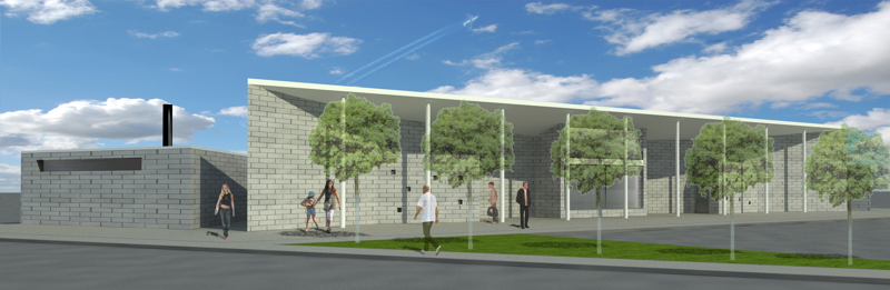 Programma:Edificio polifunzionale per il quartiere e per gli impianti sportivi.