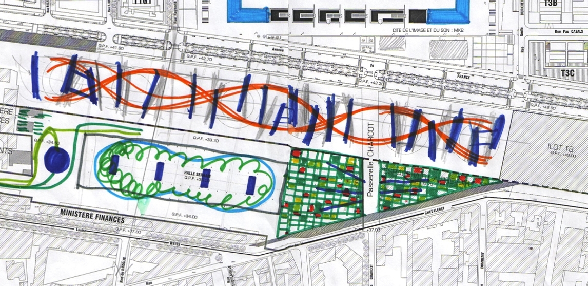 Paris Cliente: EPPJP Programma:Palazzo di Giustizia nel quartiere di Tolbiac sulla riva sinistra della Senna Progetto: 2006 Budget: 22.000.000,00€ Categoria:competition.istitutional.landscape.office.urban. |